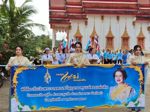 (>) นายสมนึก ธูปหอม นายอำเภอย่านตาขาว จังหวัดตรัง เป็นประธานในพิธีอัญเชิญเงินขวัญถุงพระราชทานกองทุนแม่ของแผ่นดินและพิธีแลกเงินขวัญถุงพระราชทานกองทุนแม่ของแผ่นดิน บ้านหนองเป็ด หมู่ที่ 6 ตำบลนาชุมเห็ด อำเภอย่านตาขาว จังหวัดตรัง เบื้องหน้าพระบรมฉายาลักษณ์สมเด็จพระนางเจ้าสิริกิติ์ พระบรมราชินีนาถ พระบรมราชชนนีพันปีหลวง โดยมีวัตถุประสงค์เพื่อให้ราษฏรให้หมู่บ้านระลึกถึงพระมหากรุณาธิคุณของพระองค์ฯ อีกทั้งเพื่อความเป็นสิริมงคลและขวัญกำลังใจในการร่วมมือกันในการแก้ไขปัญหายาเสพติดในหมู่บ้านและชุมชน จึงได้ร่วมมือกันขับเคลื่อนป้องกันและแก้ไขปัญหายาเสพติดในหมู่บ้าน โดยใช้หลักชุมชนดูแลชุมชน